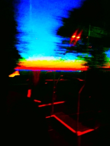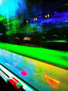 Deze foto's zijn ontstaan tijdens een busreis over de Afsluitdijk. De reis was lang, de bus ervoor had ik nét gemist en ik was de enige - vrouwelijke - passagier in de hele bus. Toen kreeg ik een prachtige zonsondergang cadeau en begon te fotograferen. En dat wat begon als 'tussentijd', namelijk het in mijn eentje 's avonds moeten terugreizen naar huis, kreeg opeens betekenis. Door het intensieve kijken werd de reis het startpunt voor nieuw werk, energie en inspiratie.